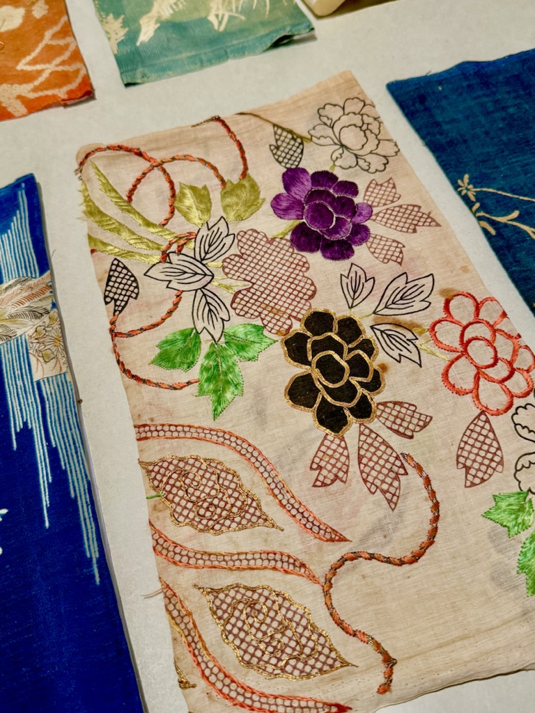 とても素敵ですが、洗練という意味では断然日本の方に軍配が上がるなと感じました。丸紅ギャラリーで昔のお着物の裂に触ってみて、染色、刺繍、織り、全てにおいて職人さんの技の高さは世界一だと思いました。